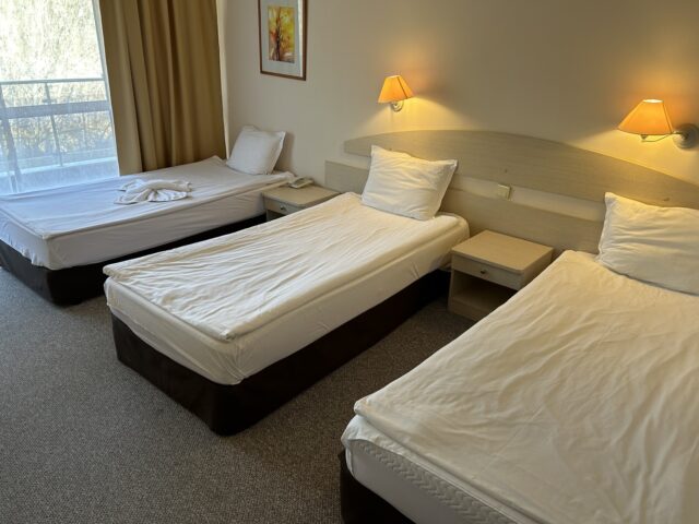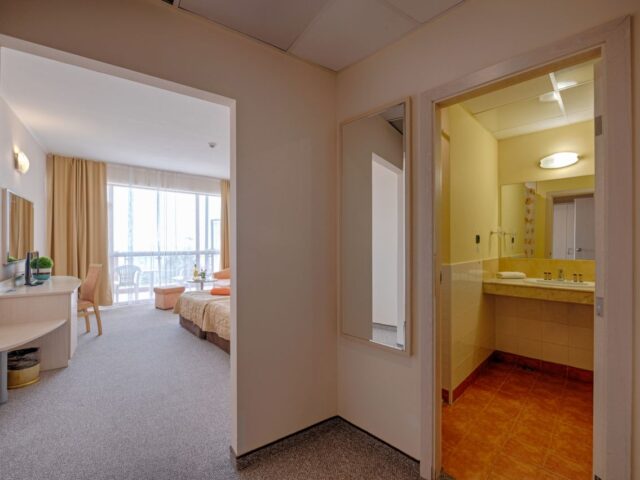 Проживання: проживання по 4 людини в номері, по 5 людей в номері типу family, і номери типу apartment на 2 кімнати і окремими санвузлами. Номери відповідають рівню 4 зірки. Тут кожна дитина почуватиметься затишно, як у справжньому курортному готелі. Номери обладнані зручними ліжками, телевізорами, фенами, шафами, кондиціонерами та власними санвузлами. В кожному номері є тераса.