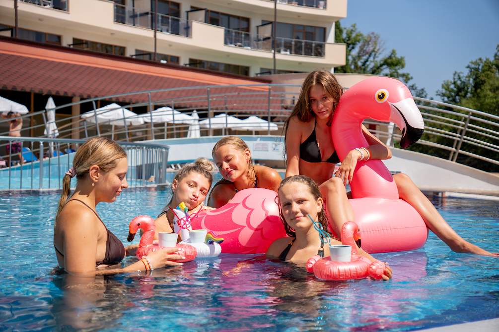 Активності та змагання: волейбольні та футбольні турніри, акваеробіка, вечірки біля басейну, мильне шоу, пригодницькі квести, олімпійські ігри, стрільба з лука, танцювальні майстер-класи.